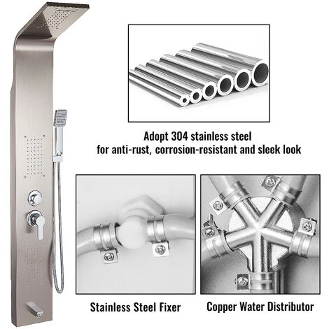 Questo sistema di pannelli doccia costituito da un telaio in acciaio inossidabile 304, un distributore d’acqua in ottone e un fissatore in acciaio inossidabile funzionerà senza manutenzione, resistente alla ruggine / corrosione per allungare i tempi di servizio con la sua costruzione integrale.