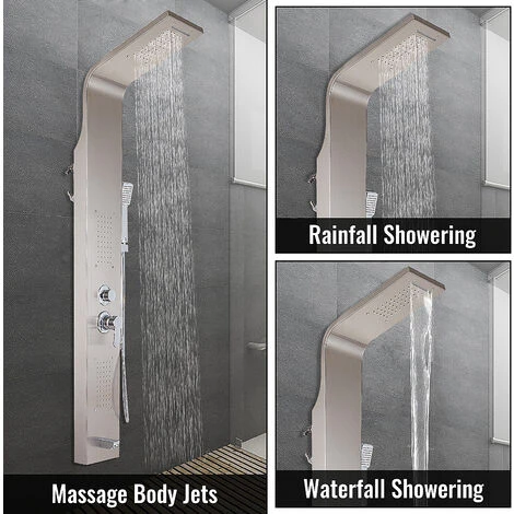 - 【AMPI SCENARI DI UTILIZZO】 – Il colore argento rende questo sistema di pannelli doccia a parete un aspetto di fascia alta nella stanza o nei luoghi commerciali. Adatto per rimodellare il tuo bagno, hotel, resort, appartamenti per migliorare il gusto della stanza e goderti una doccia accogliente dopo una lunga giornata di lavoro.
