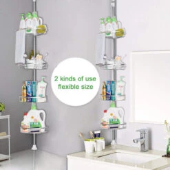 Mensola Doccia Telescopica In Acciaio Inox A 4 Ripiani Per Bagno Doccia