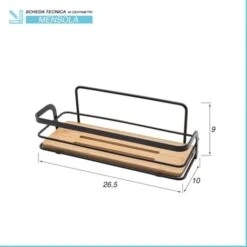 Mensola Doccia Rettangolare In Acciaio Nero E Ripiano In Bamboo Haiti