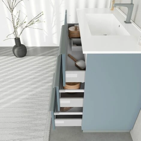 ARREDO BAGNO A TERRA 100CM CELESTE CON CASSETTI, LAVABO E SPECCHIO 100X60 CON LAMPADA