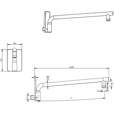 Braccio doccia 1370 – 41 cm – ottone cromato o nero opaco
