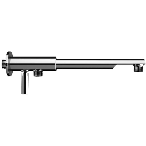 BRACCIO DOCCIA MINIMAL IN OTTONE CROMATO 30 cm con rosetta e con deviatore integrato e doppia uscita 1/2 per attacco sia del soffione che del flessibile doccia