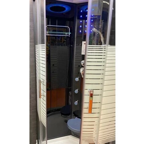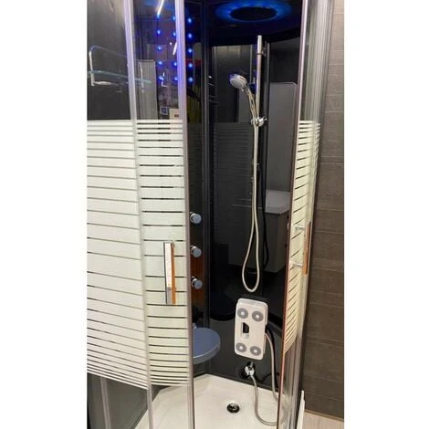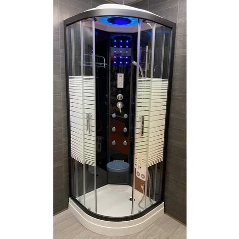 Cabina doccia idromassaggio 80X80X220cm con interno nero e porte in vetro trasparente.