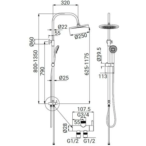 - Tipo di colonna docciaPer doccia