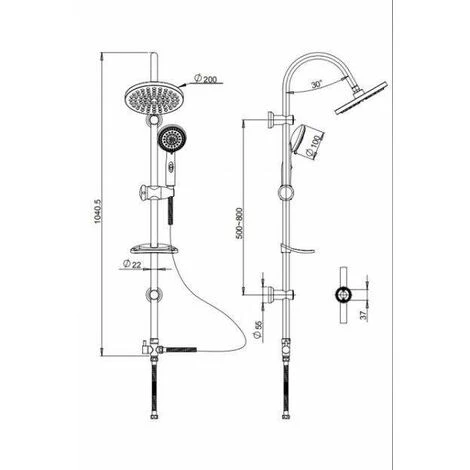 Questa colonna doccia con stile moderno, è dotata di soffione doccia regolabile Ø200 mm, doccia a 3 getti per il benessere del corpo con supporto regolabile, supporti regolabili per installazione su fori esistenti, il collegamento è semplice grazie al flessibile Ø1/2G collegabile a un miscelatore doccia esterno, dotata di deviatore a rotazione per selezionare l’erogazione da soffione oppure doccia