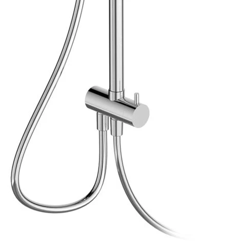 Colonna doccia, supporto doccetta con scorrimento a pressione per una facile regolazione. Doccetta di diametro 80 mm con riduttore di portata a 8 l-min. Soffione di diametro 200 mm. Asta murale da 1051 mm e diametro 25 mm con fissaggi a muro regolabili. Tubo flessibile ultraflex, in materiale plastico ad effetto metallico, da 1750 mm.
