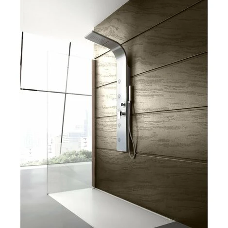 BELLISSIMO PANNELLO DOCCIA IDROMASSAGGIO IN ACCIAIO INOX SPAZZOLATO CON CASCATA CERVICALE E GETTI IDROMASSAGGIO INCASSATI ED ORIENTABILI