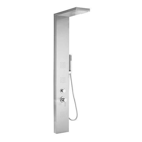Colonna doccia Metaform Aqualine Manhattan è il pannello doccia in acciaio inox con finitura satinata. Installazione e compatibilità con tutti i box doccia. Dotato di 4 funzioni selezionabili: soffione, getto, effetto cascata, doccetta e getti orizzontali “massage”.
