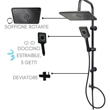 – x1 Colonna doccia senza miscelatore, saliscendi con soffione rotante e doccino 3 getti