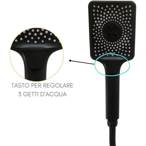 Asta saliscendi completa di soffione doccetta e deviatore, i 3 getti d’acqua del doccino consentono una doccia dal getto comodo e regolabile in base alle varie esigenze.