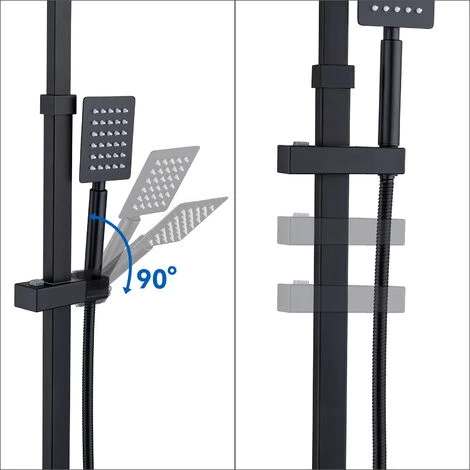 Auralum Colonne doccia nero senza rubinetto con doccia a pioggia 25 x 25 cm e doccetta quadrata, set doccia in ottone, asta manuale regolabile