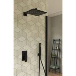 Kit Doccia Quadro Nero Soffione Braccio Presa Acqua Doccetta Laccio Pvc Bagno Confezione 1