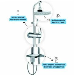 Colonna Doccia Attrezzata 009 Ottone Cromato 2 Funzioni Soffione Doccetta Quadro Pezzi 2