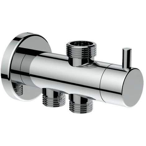 Deviatore di ricambio per colonna doccia Papete con codice SCACOL0061CR. L’articolo realizzato in ottone cromato lucido è dotato di rosetta coprimuro e attacchi universali da 3/4 x 1/2 x1/2 M.