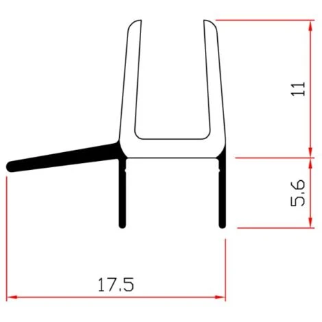 Guarnizione box doccia orizzontale con gocciolatoio per vetri di spessore da 6 mm.