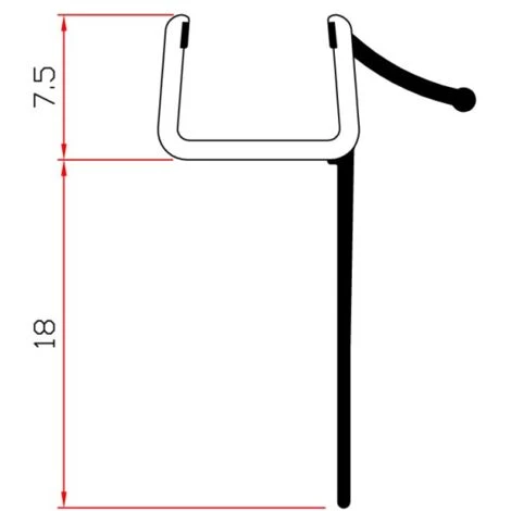 Guarnizione box doccia orizzontale con gocciolatoio per vetri di spessore da 8 mm.