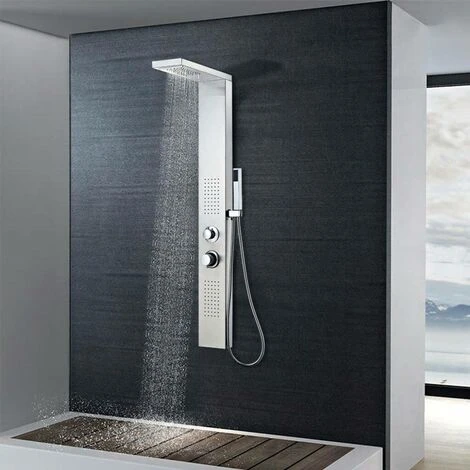 Il pannello doccia multifunzionale ha un design elegante e costituisce un’aggiunta eccellente per il bagno. Il pannello è realizzato in resistente acciaio inossidabile con finitura spazzolata ed un elegante design quadrato. Ha quattro funzioni: pioggia, cascata, idromassaggio e doccia a telefono che possono essere facilmente selezionate tramite un pomello. Immergetevi in una doccia realmente rilassante e godetevi lo stile moderno di questo splendido pannello doccia!