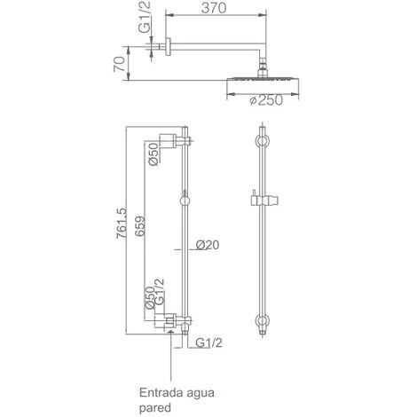 La barra della doccia a mano ha un diametro di 2 cm e un’altezza di 76,15 cm. Il braccio irroratore ha una lunghezza di 37 cm.