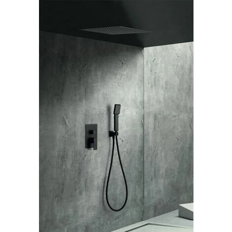 Il soffione è a soffitto, quadrato 40 cm x 40 cm per lato (compreso il pre-telaio). È ultrapiatto e anticalcare.