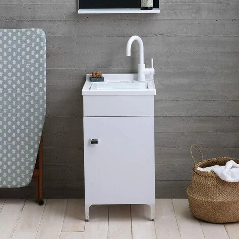 Non è incluso nell’offerta il rubinetto che è acquistabile separatamente. La parte in legno di questo mobile per lavanderia è prodotta in Europa mentre il lavabo è fabbricato in Italia. Profondità della vasca: 25 cm. Potrete trovare questo pratico e versatile prodotto in varie dimensioni nel catalogo di Kiamami Valentina.
