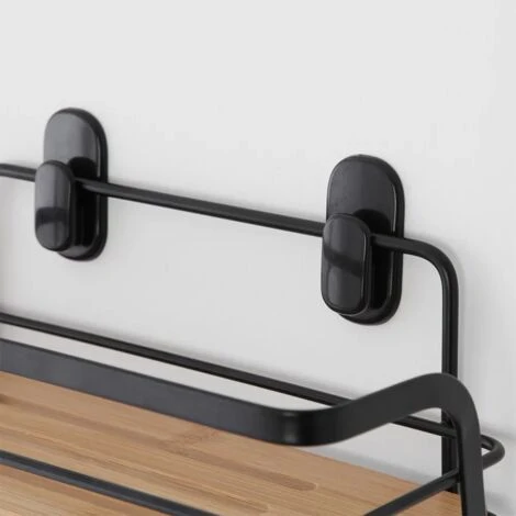 Mensola doccia – linea Haiti in acciaio nero con 1 ripiano in legno di bambù naturale