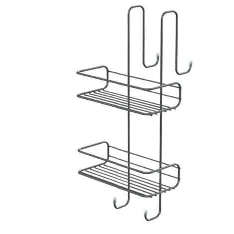 Portasapone a due ripiani in acciaio cromato, per arredo box doccia o vasca.