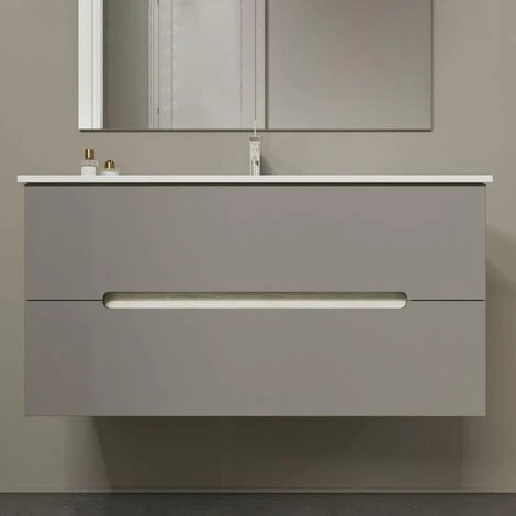 MOBILE BAGNO SOSPESO CON CASSETTI GRIGIO OPACO E STRUTTURA BIANCO QUERCIA 100CM