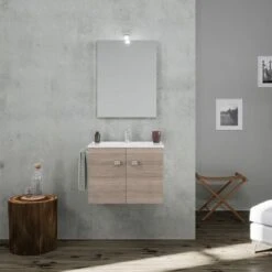 MOBILE BAGNO A PARETE IN QUERCIA NATURALE DA 80 CM CON ANTE VENEZIA
