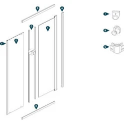 Questo Box Doccia è costituito da due ante che scorrono su dei cuscinetti in nylon a sfera regolabili e da un lato fisso a completare la cabina a tre lati, adatta per Box Doccia a centro Parete.