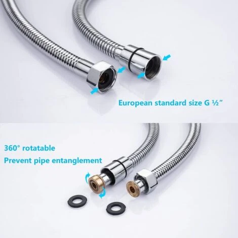 【Anti-avvolgimento】 Il connettore che collega la doccetta può essere ruotato. Quando si utilizza la doccetta, il tubo non ruota per evitare che si aggrovigli