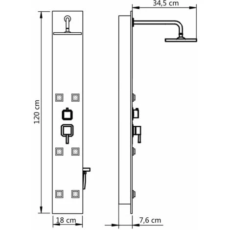 La colonna doccia è realizzata in acciaio inossidabile e vetro temperato. Il vetro temperato è stato prodotto mediante trattamento termico e chimico controllato, che lo rende più resistente e sicuro rispetto al vetro normale. È dotata di tre funzioni doccia differenti: doccia a pioggia, getto massaggiante e doccia a telefono, molto semplici da selezionare. Gli ugelli in silicone sono resistenti alla formazione di residui di calcare. Immergetevi in un’esperienza incredibilmente rilassante grazie a questa colonna doccia, apprezzandone al contempo lo stile moderno e lo splendido design! Facile da assemblare.