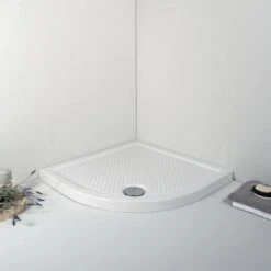 Piatto Doccia Bordato Antracite Effetto Pietra In Acrilico Mod. Flower 80x80x4 Cm Semicircolare