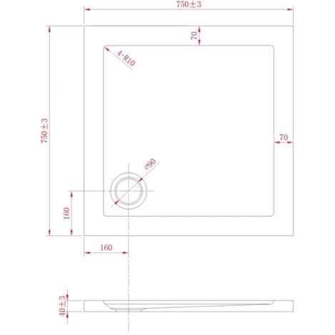 - Piatto Doccia 75×75 CM Quadrato in Acrilico e ABS rinforzato