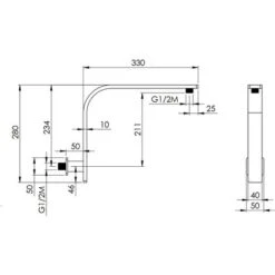 BRACCIO DOCCIA QUADRO IN OTTONE CROMATO DAMAST CASSIOPEA 350