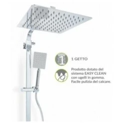 Colonna Doccia Quadra Con Deviatore ZEUS METAFORM Acciaio Inox Con Soffione E Doccetta Quadro