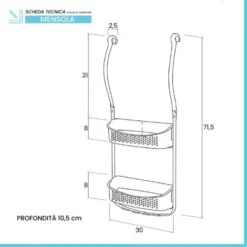 Mensola Portaoggetti Doccia In Plastica 32 Cm 2 Ripiani Grigia