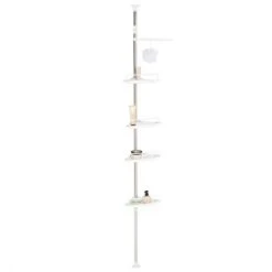 Mensola Doccia Telescopica Inox Con 4 Ripiani Bianchi Altezza Regolabile 254-304cm Bianco