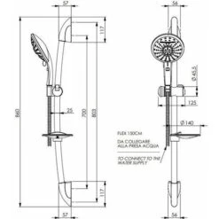 Asta Doccia Saliscendi 006 Completo Doccetta 3 Funzioni Multigetto H 65 Cm Pezzi 1