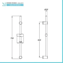 Gancio Supporto Doccia Cromato Per Aste Saliscendi Scorrevole Confezione 1