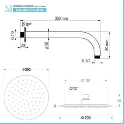 Set Doccia Cromo Braccio Tondo 35 Cm + Soffione Tondo 20 Cm In Acciaio