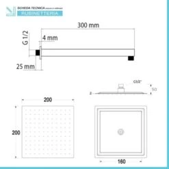 Set Doccia Quadrato Cromo Braccio 30 Cm + Soffione 20×20 Cm Acciaio