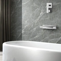 Set Doccia Quadrato Cromo Braccio 40 Cm + Soffione Acciaio 30×30 Cm