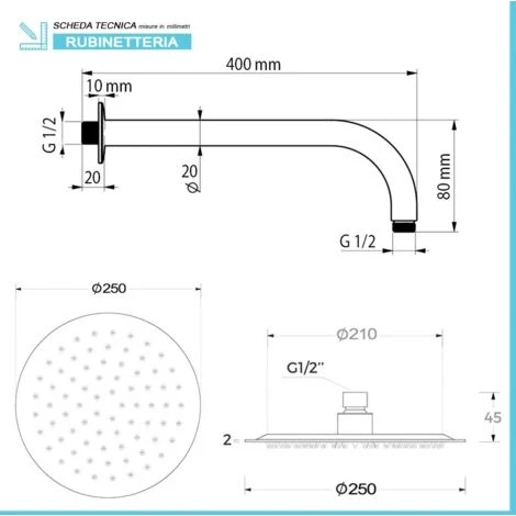 - Tipologia: kit completo soffione, braccio, kit doccia e miscelatore;