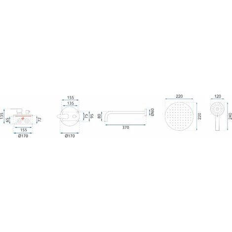 - Incluso: rubinetto da incasso, soffione doccia, braccio soffione doccia, Tubo 1500 mm, doccetta, supporto per doccetta, copertura