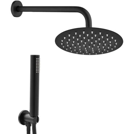 Set doccia tondo nero opaco – completo di soffione 30 cm, braccio da 33 cm e doccetta con presa acqua e flessibile