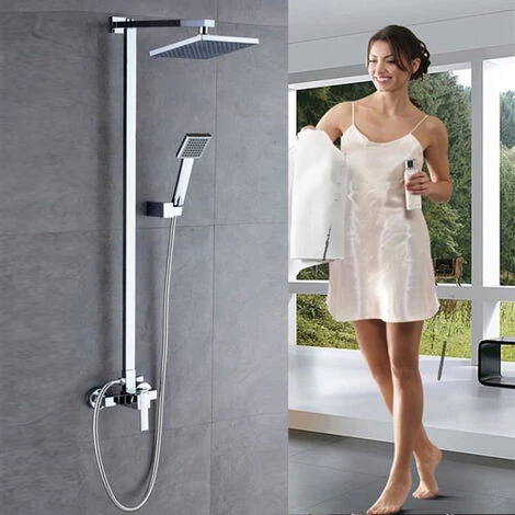 Colonna Doccia Completa In Acciao Inox Soffione Quadrato Da 30 Cm Doccetta Set Design Moderno Multifunzione Getto A Pioggia Senza Miscelatore Saliscendi Asta Regolabile Da 78 A 106 Cm Middleton