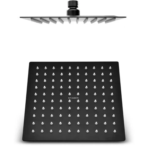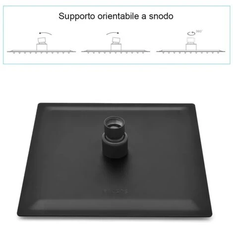 Questo set doccia è composto da un soffione quadrato di dimensioni 25×25 cm ed un braccio da 33 cm, entrambi in finitura nero opaco. Il soffione è realizzato in resistente acciaio inox che garantisce durevolezza e leggerezza del prodotto ed il braccio doccia è in acciaio.