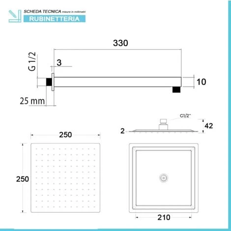 - Dimensione soffione: 25×25 cm – H 4 cm;